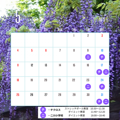 5月のストレッチポール/ダイエット教室のスケジュールです🗓️